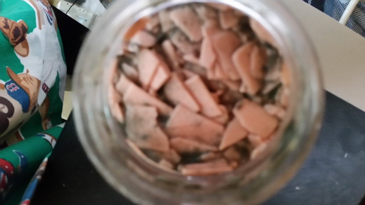 This is the top view of the last picture of the gum in 2025 & I haven't touched the gum since that day we opened those packs & placed it in the jar. Please share this post to all those guys that like opening vintage packs & want to try to chew the gum I bet after they look at these pictures they will change their minds in wanting to chew it. Am I an evil crazy madman. In the words of Greg doing his best David Spade impression from the show Rules of Engagement "Yeah.......ya kinda are....."